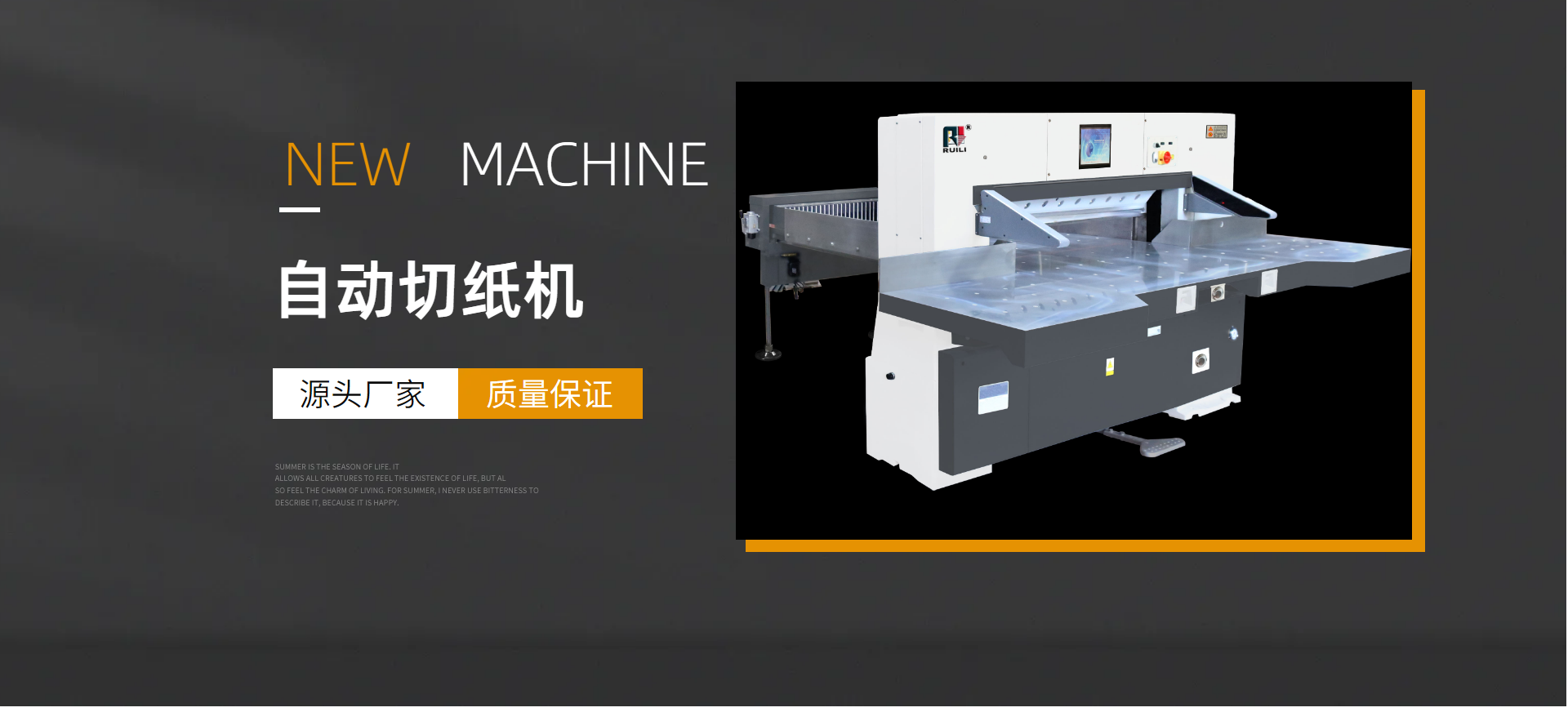 瑞安市瑞勝機械有限公司是一家專業(yè)集“生產、銷售、服務”于一體的印刷包裝機械企業(yè);有二十余年專業(yè)制造切紙機的經(jīng)驗,在切紙機行業(yè)中享有較高聲譽。研制出集光、機電、液為一體的高性能高品質的切紙機系列產品,主要產品有電腦切紙機,雙液壓電腦切紙機,雙導軌數(shù)顯切紙機,快捷式壓痕機系列,覆膜機、上光機、燙金機等系列產品。